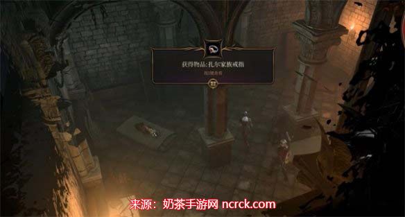 退出客房后,朝对面方向行走至尽头,在右手边的房间里,你会发现一个名为戈迪的隐形NPC。使用反隐技能,就可以发现他的存在。通过口才技巧或者直接击败他,都可以获得扎尔家族戒指。