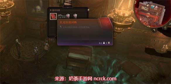 玩家需要前往宅邸的右下角的客房,在那里你将找到一个红木壁橱。仔细检查壁橱,你将在其中找到所需的扎克拉语词典。
