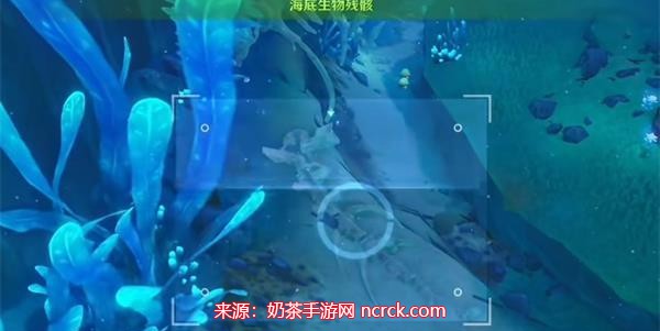 4.我们在上浮的过程当中,朝西边海底找到生物残骸并且使用留影机拍摄。