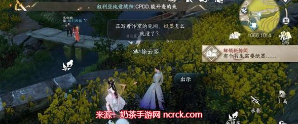 继续您的旅程,前往杭州的814.1416坐标,与徐云客进行对话。通过与他的对话,您将获得一个关键道具——写着藏头诗的纸页。