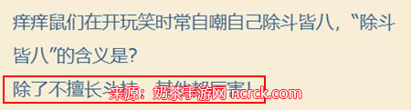 问:痒痒鼠们在开玩笑时常自嘲自己除斗皆八,“除斗皆八”的含义是?