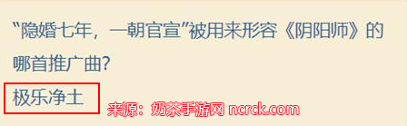 问:“隐婚七年,一朝官宣”被用来形容《阴阳师》的哪首推广曲?