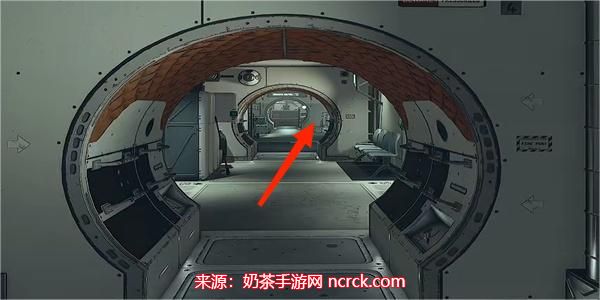 3、成功登船后,您将被传送至船舱内。从这里开始,请沿着指示标志前进,经过两个圆形拱门后暂时停下。