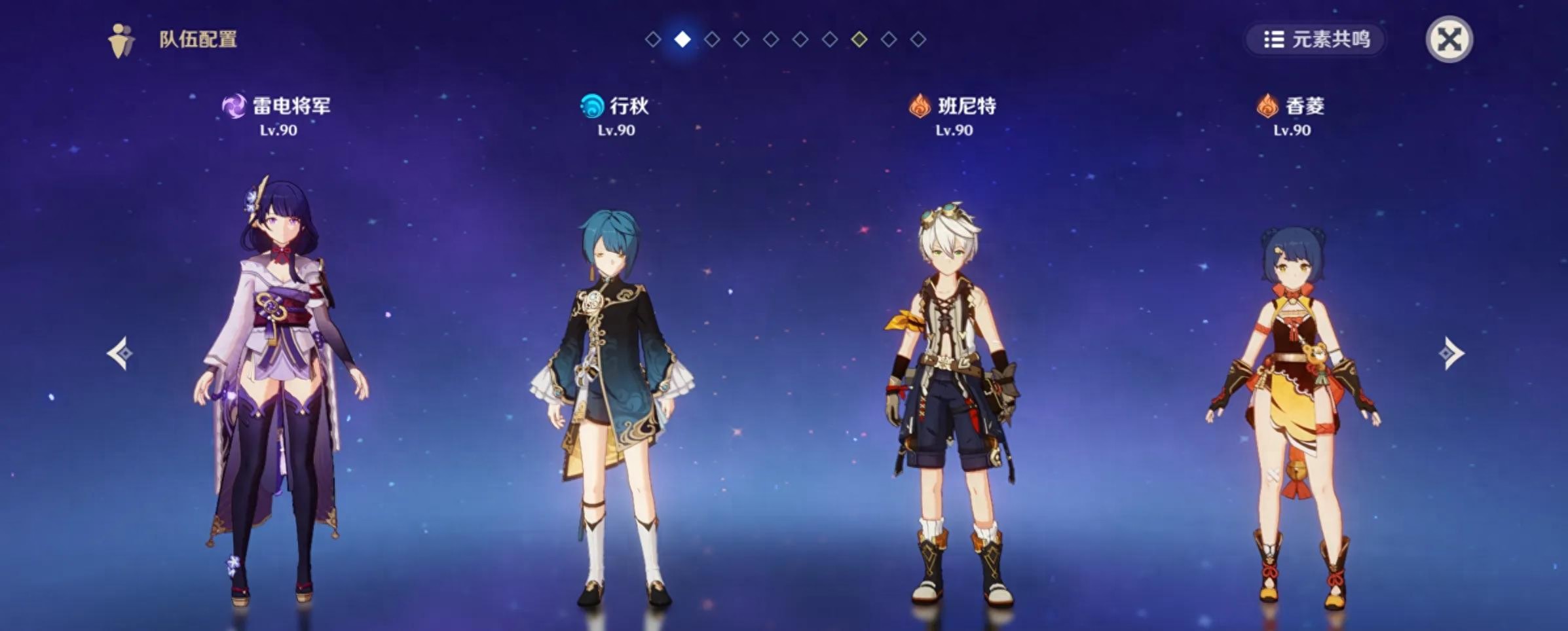 2、神明队: 雷神可以与其他三位神明角色组成四神队伍,适用于大世界环境。