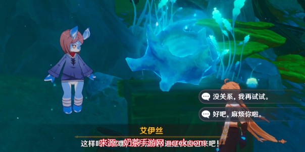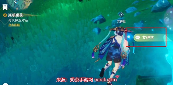 使用地图传送到埃尔顿海沟的锚点,依照任务标志前往目的地,并再次与艾莉丝对话,使用海螺。