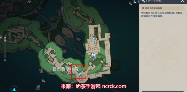 操作:打开地图,找到目的地—自然哲学学院,并进行传送。