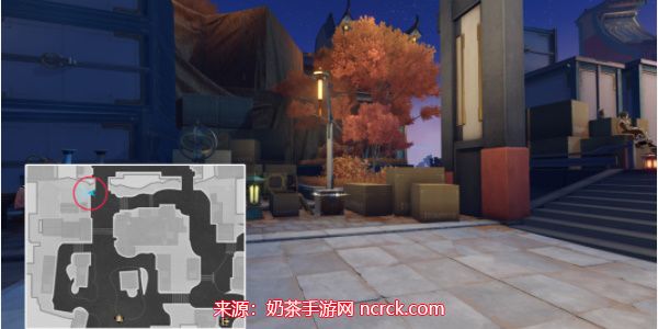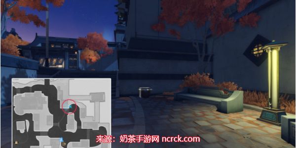 在地图左上角路灯下,别让明亮的光线分散了您的注意力。