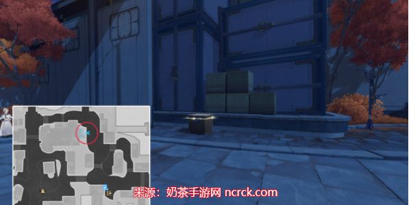 同样从地图中心的传送锚点出发,继续往北走,当您来到一处货物旁,就可以找到这个宝箱。