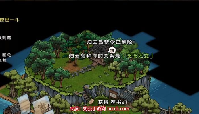 具体操作:任务完成后找到狂半生对话,即可获得荐书并正式解锁归云岛。