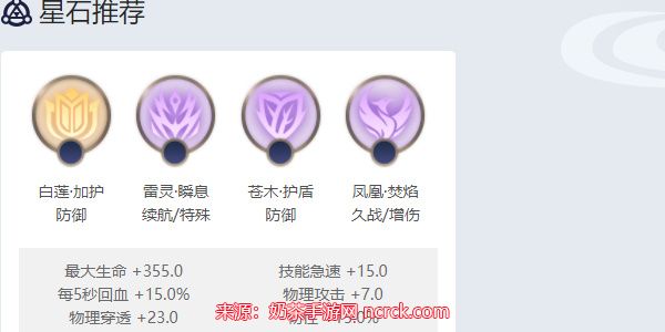 在亚历山大的星石选择中,我们推荐白莲·加护、雷灵·瞬息、苍木·护盾以及凤凰·焚焰。这些星石的组合将增强他的持续作战能力、输出能力以及生存能力,使他在战场上更加无往不胜。