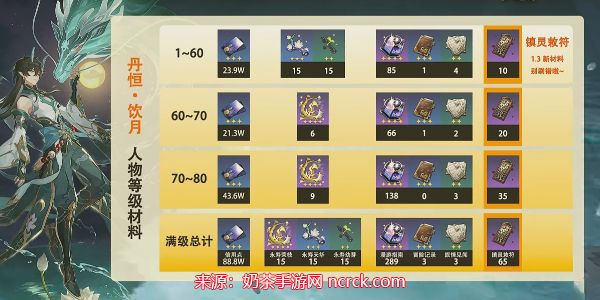 60级突破材料:永寿荣枝6、镇灵敕符20、信用点*80000。