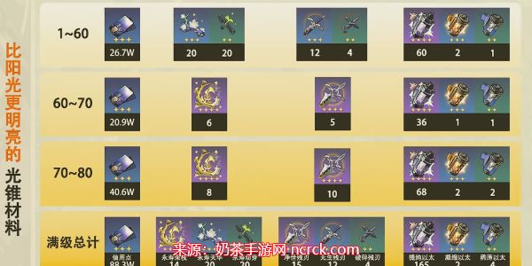 3、光锥突破材料(以光锥【比阳光更明亮的】为例):
