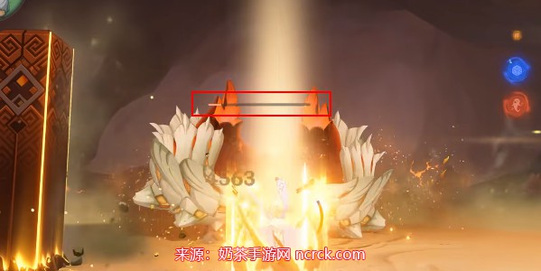 将火盾的耐久度降低至接近破裂状态,但切勿直接击破。