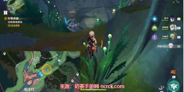 前往海沫村东北方向地下锚点,与NPC柯莎对话,接取任务「好事多磨」。