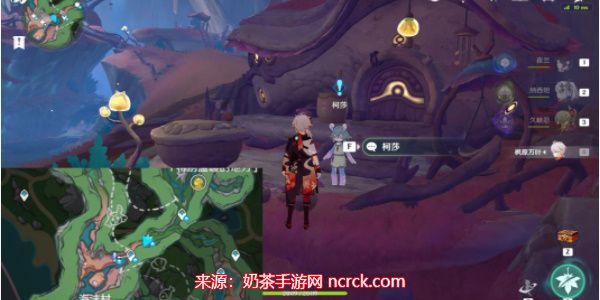作为水元素角色,你需要前往柯莎的苗圃,帮助她浇水。完成后,与柯莎对话,获得一个奇特的零件。