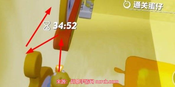 2、之后,从那里跳到挂饰的凹凸部分,遵循箭头的指示来回跳跃,这样就能到达顶端飞机。