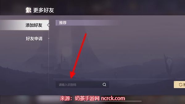 在“添加好友”选项下方有一个文本框,名为“请输入识别码”。将复制的识别码粘贴到这里即可添加。