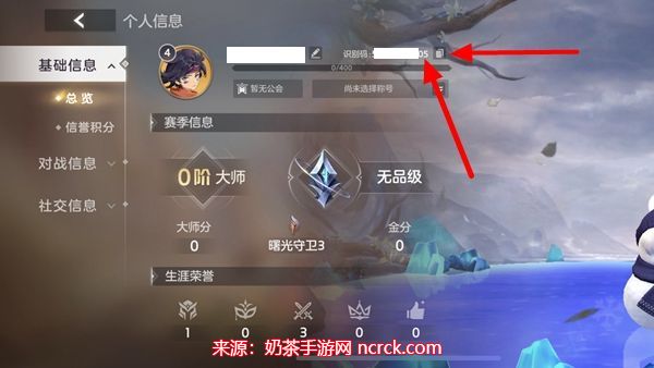 在个人资料界面中,您会在名称ID后面看到一串“识别码”。点击后方的复制按钮将其复制。